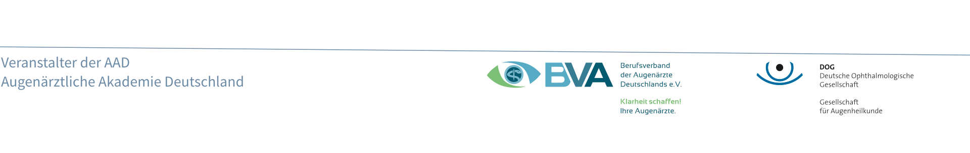 vom 15. bis 18. März 2023 laden wir Sie zum 23. Mal ein, Teil der AAD 2023 zu sein. BVA Berufsverband der Augenärzte Deutschlands e.V. und die DOG Deutsche Ophthalmologische Gesellschaft möchten mit Ihnen zusammen die Augenärztliche Akademie gestalten und erleben.